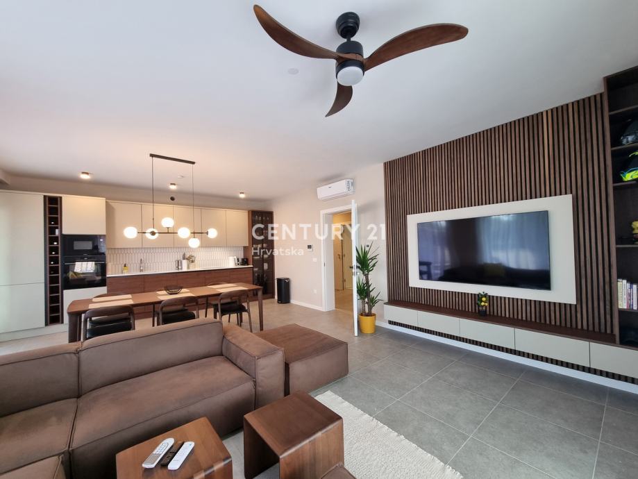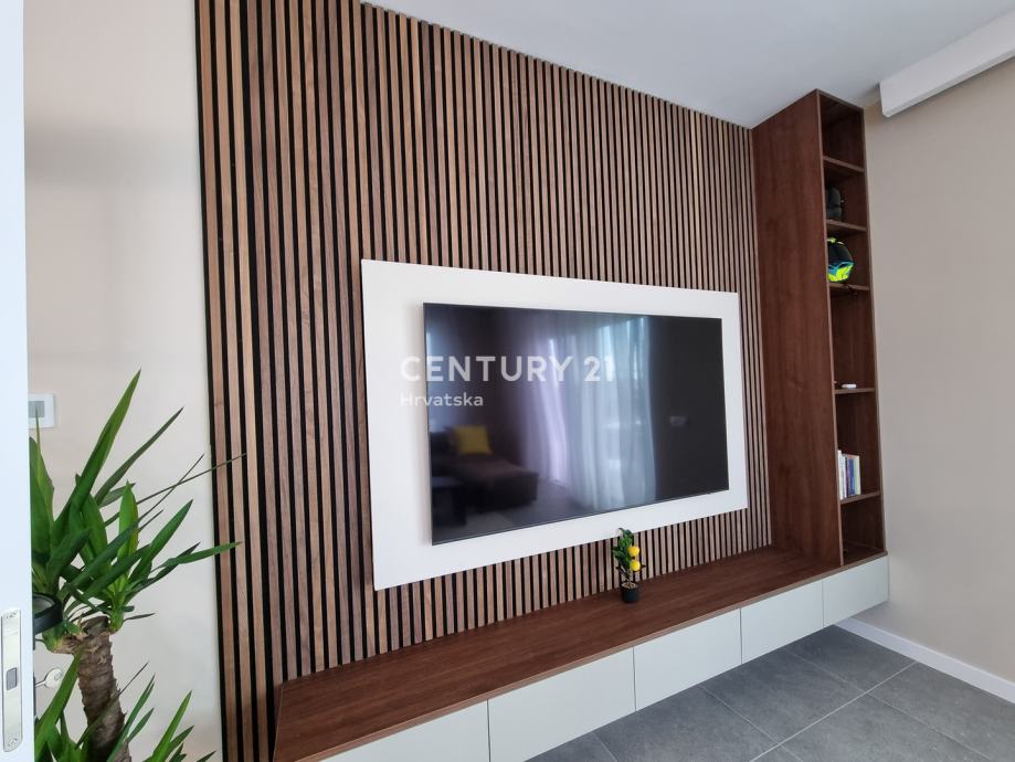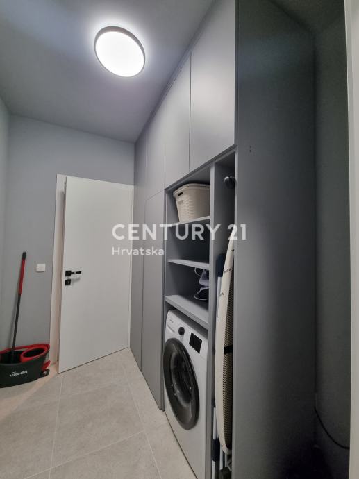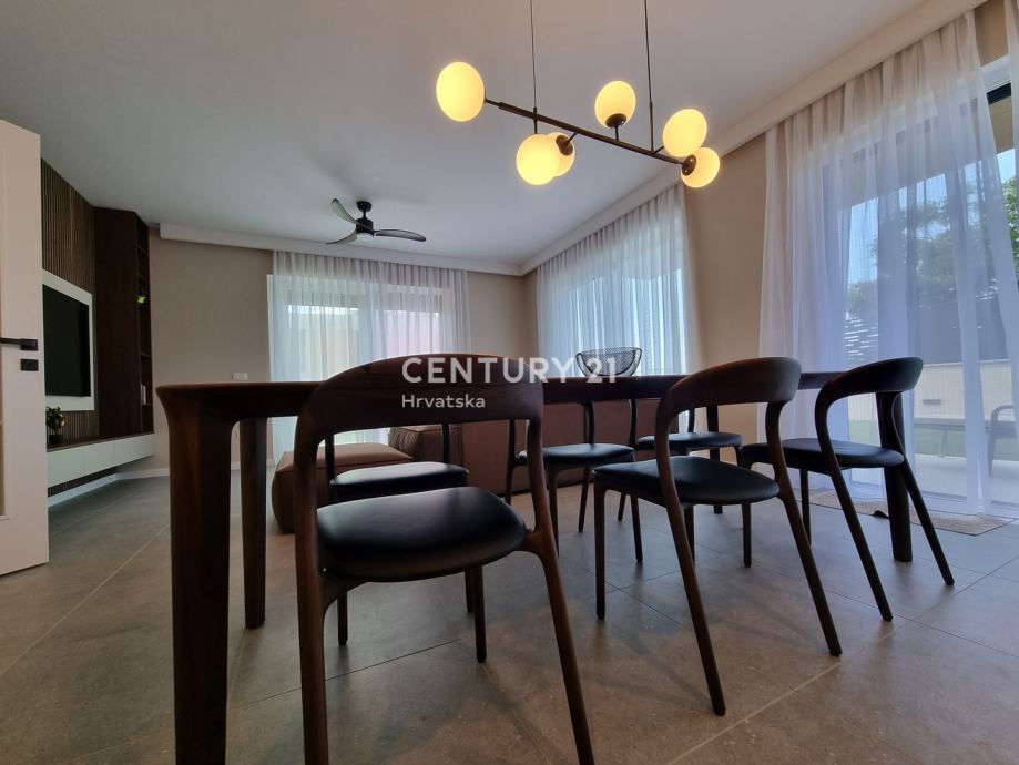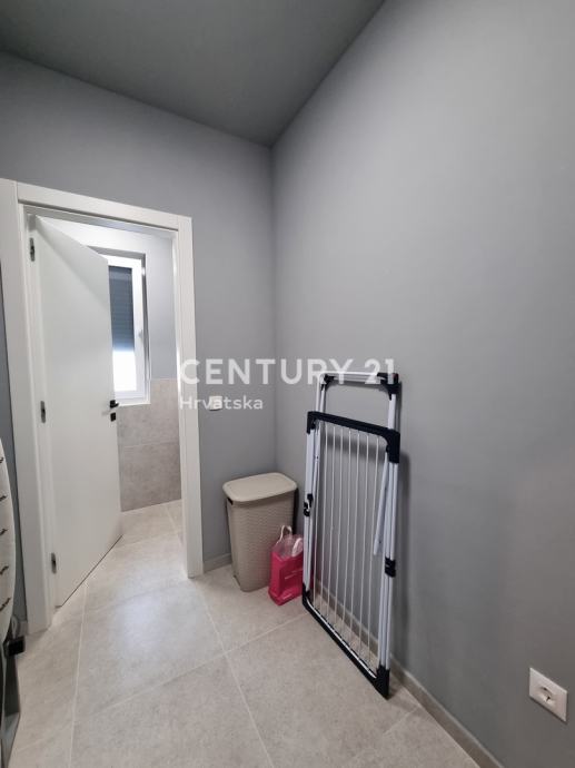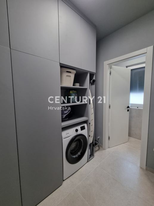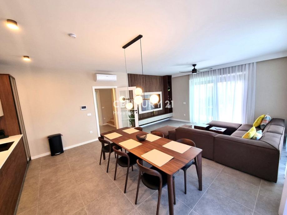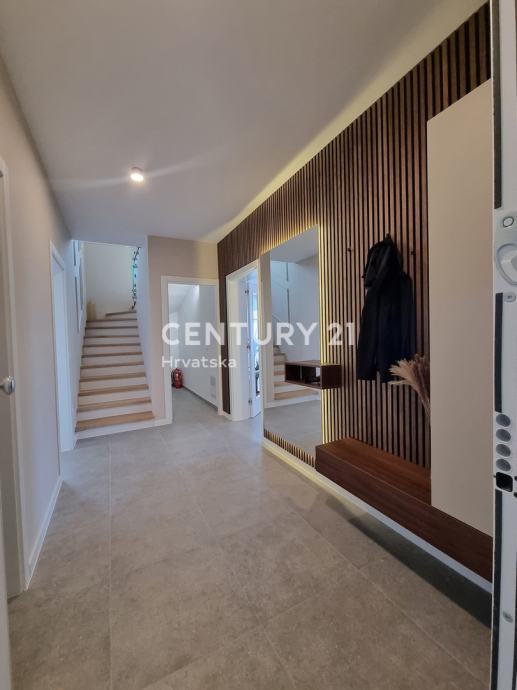 Sastoji se od prizemlja i 1. kata. U prizemlju se nalazi hodnik, praonica, wc, kupaonica, spavaća soba, spremište, kuhinja, blagovaonica i dnevni boravak (open space od 37,60 m2) te natrkivena terasa od 12,90 m2.