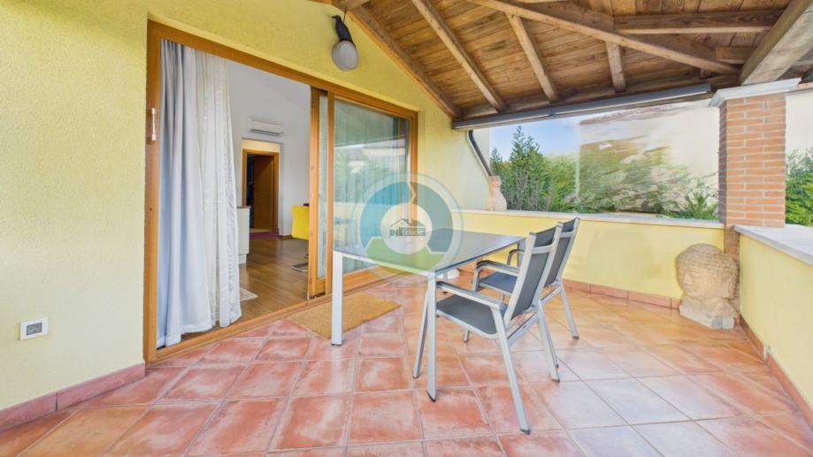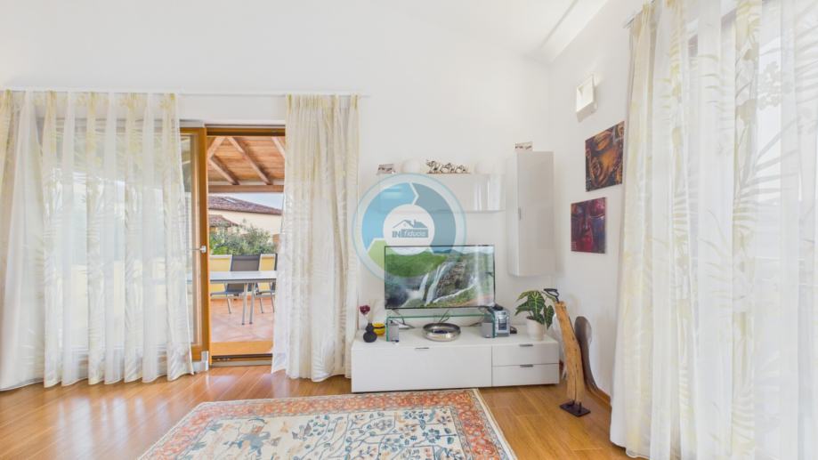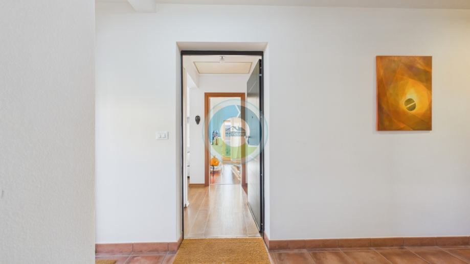 Veći stan sastoji se od predsoblja, kupaonice, kuhinje s blagovaonom i dnevnog boravka s izlazom na prostranu natkrivenu terasu, idealnu za uživanje u vanjskom prostoru tijekom cijele godine.