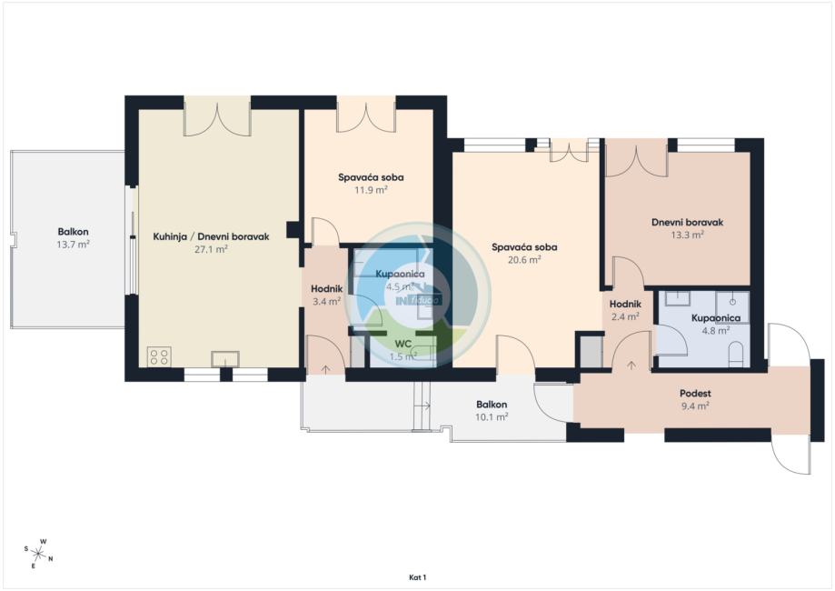 Stan je u naravi podijeljen na dvije potpuno odvojene stambene jedinice, svaka sa zasebnim ulazom, što ovu nekretninu čini izuzetno fleksibilnom i pogodnom za više namjena – od obiteljskog stanovanja, preko iznajmljivanja, do kombinacije privatnog i poslovnog prostora.