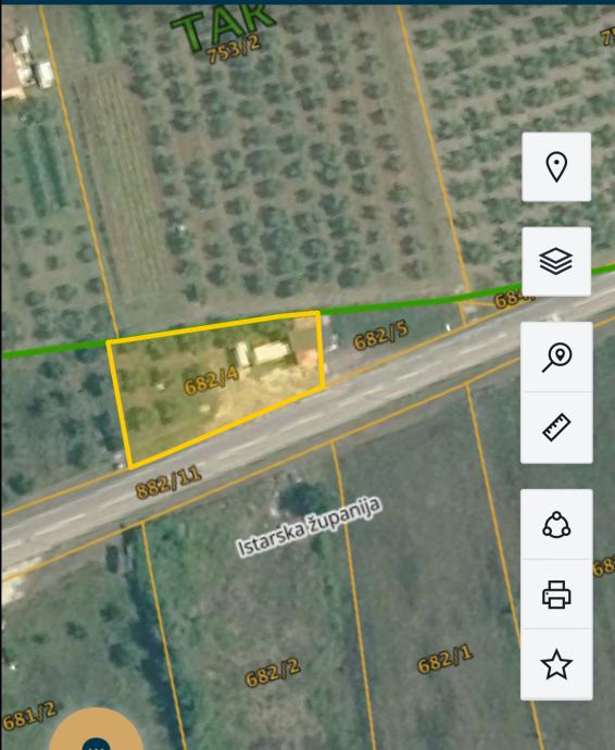 Poljoprivredno zemljište površine 1.203 m² smješteno je u Vabrigi, u blizini Tara, na području Istarske županije. Čestica se nalazi neposredno uz asfaltirani put, s kojeg je izravan pristup. Teren je pretežno ravan te se na njemu nalazi 12 maslina