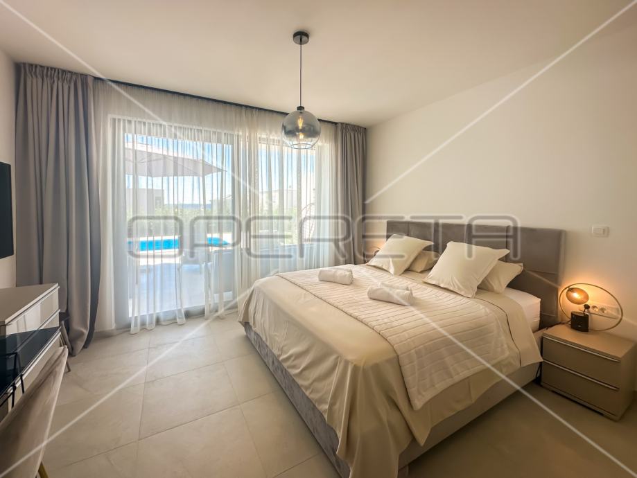 Bazen smješten u središnjem dijelu vile, pruža jedinstvenu estetiku vrijednost i funkcionalnost prostora, a prostrano sunčalište omogućava uživanje u odmaranju i upijanju sunčevih zraka.