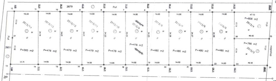 - Svih 10 zemljišta na sporednoj cesti su površine 480 m2, odnosno 14 metara ulične širine.