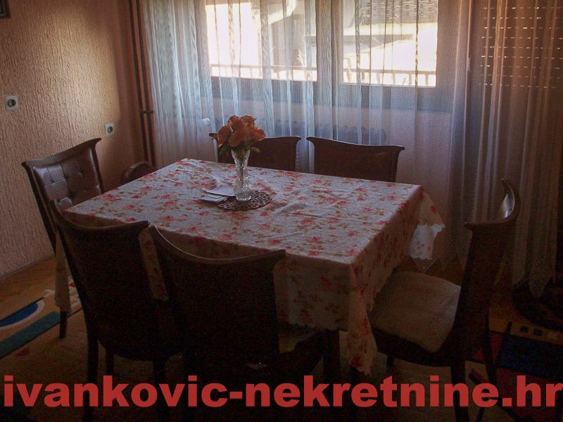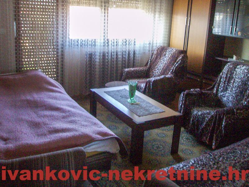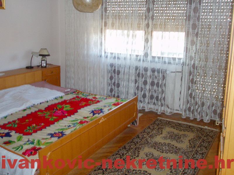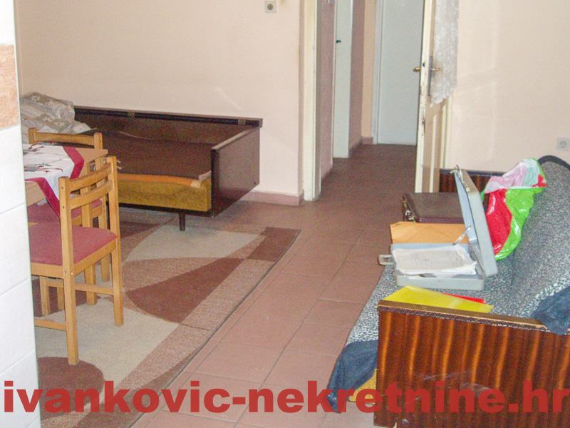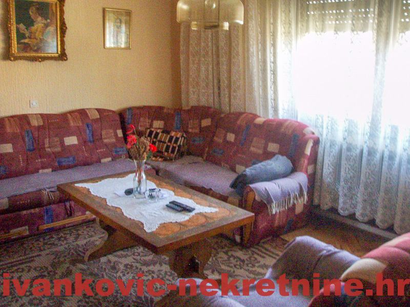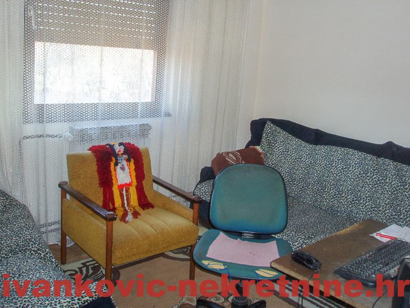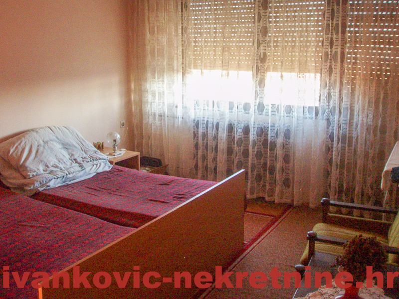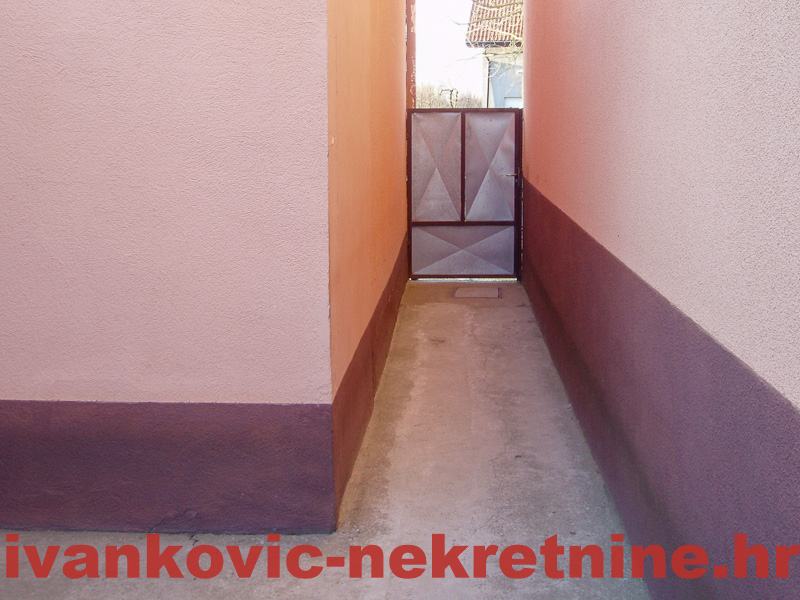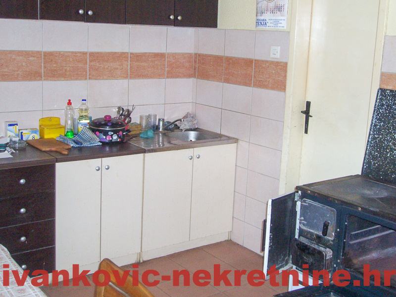 2. Kuća prizemnica stambene površine 80 m2, a sastoji se od 1 velike sobe od ulice, od koje se pregradom mogu napraviti 2 sobe, dnevnog boravka, kuhinje s blagovaonom, ostave, kupaone i terase. Ukupna površina zemljišta 654 m2. Grijanje peć na drva. Iza kuće ima mali voćnjak i vrt. Kuća je tvrdo građena, sa sitnom ciglom.