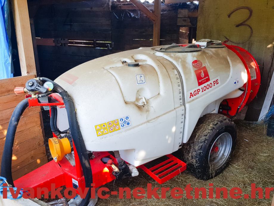 U cijeni ostaju i poljoprivredni strojevi: traktor Tafe 42D koji je služio samo za špricanje, novi i nekorišten atomizer zapremnine 1000L, stari atomizer zapremnine 440L, krunjač i čekićar novi nekorišten, motokultivator Goldoni 8KS s prikolicom i traktorska kosilica s prikolicom.