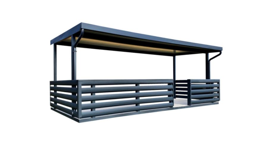 Kvalitetni Materijali: Izrađena od visokokvalitetnih materijala otpornih na vremenske uvjete, ova terasa nudi dugotrajnost i otpornost na razne vanjske utjecaje, čime osigurava dugovječnost i minimalno održavanje.
