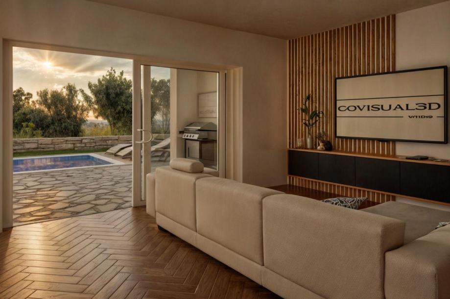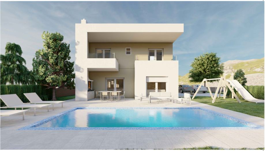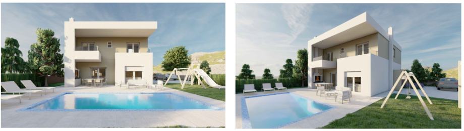 Projekt predviđa izgradnju prekrasne, moderne samostojeće vile na dvije etaže (ravni krov), s prostranom okućnicom, bazenom i vanjskim kominom. Vila je projektirana po najvišim standardima, savršena za luksuzan obiteljski život ili kao visoko isplativa investicija za turistički najam.