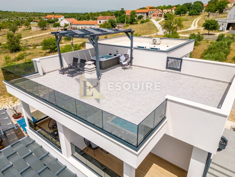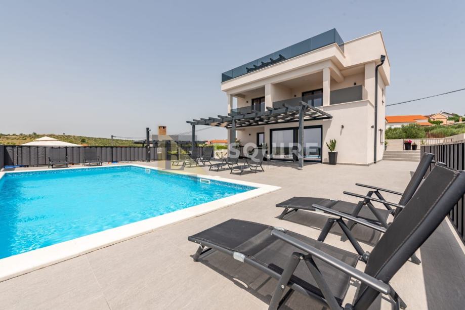 Unutrašnjost vile nudi moderno uređen prostor koji se sastoji od prostranog dnevnog boravka, kuhinje, četiri spavaće sobe i četiri kupatila.