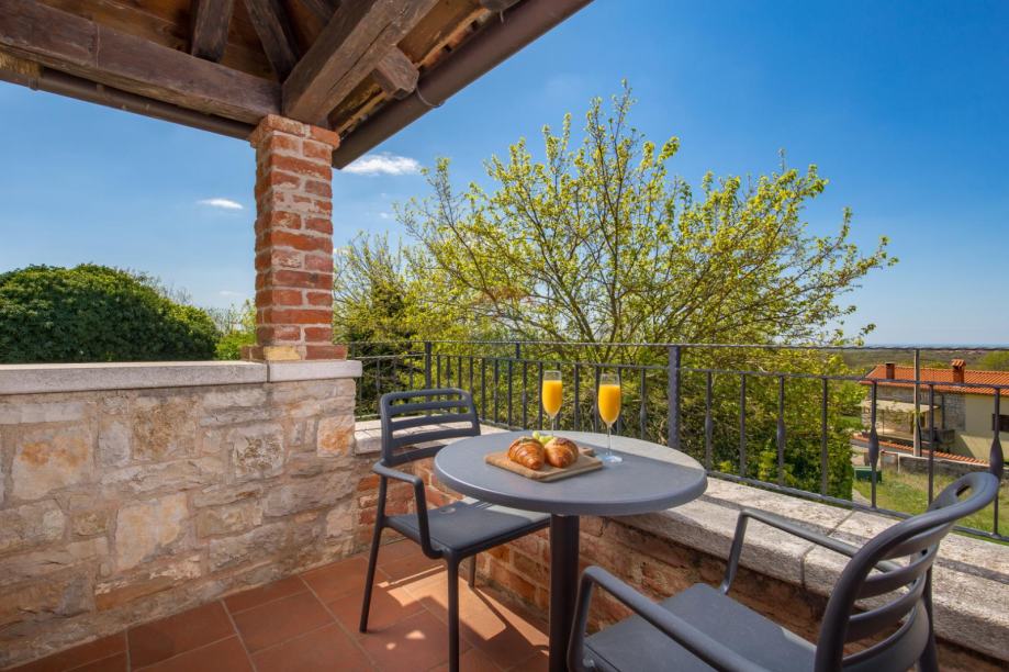 Vila ima tri spavaće sobe svaka sa svojom kupaonicom. Dvije spavaće sobe koje se nalaze na katu imaju natkrivene terase sa kojih se pruža predivan pogled na prirodu.
