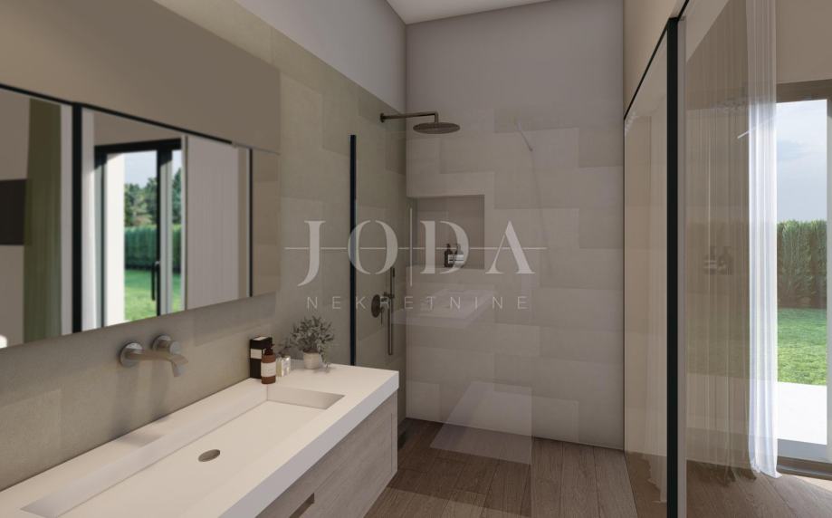 Energetski razred A+, termo fasada, stiropor 10 cm, unutarnja stolarija - drvo, podno grijanje + fan coileri, dizalica topline Panasonic