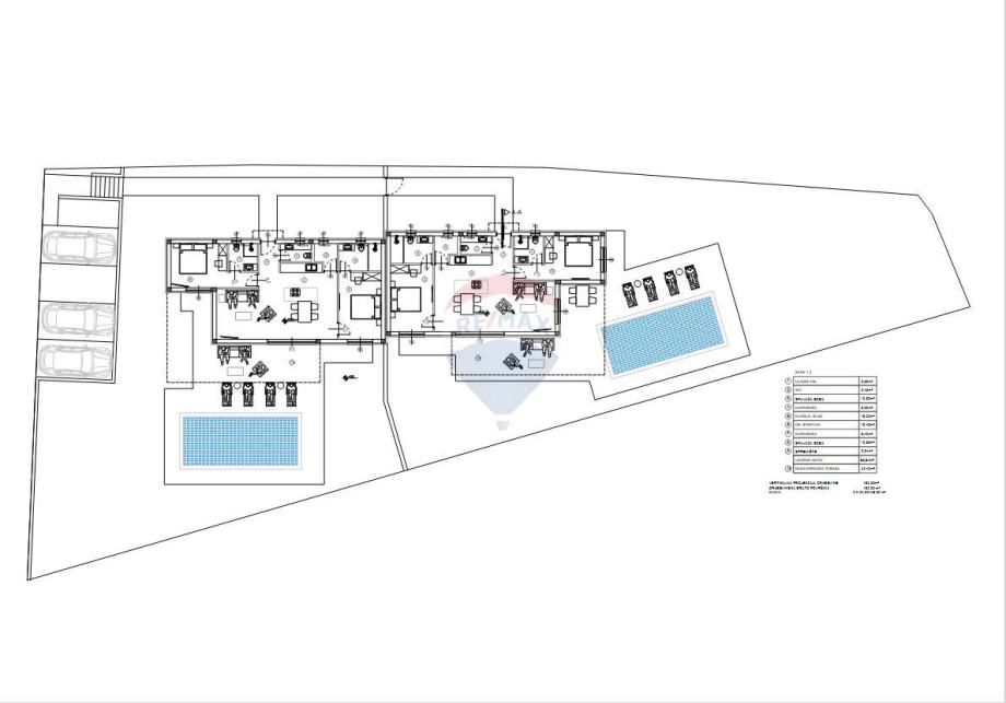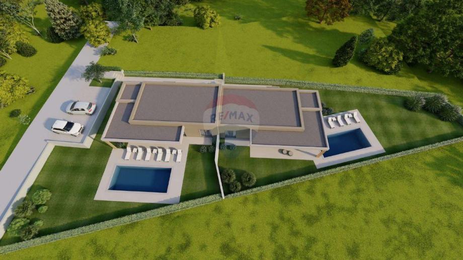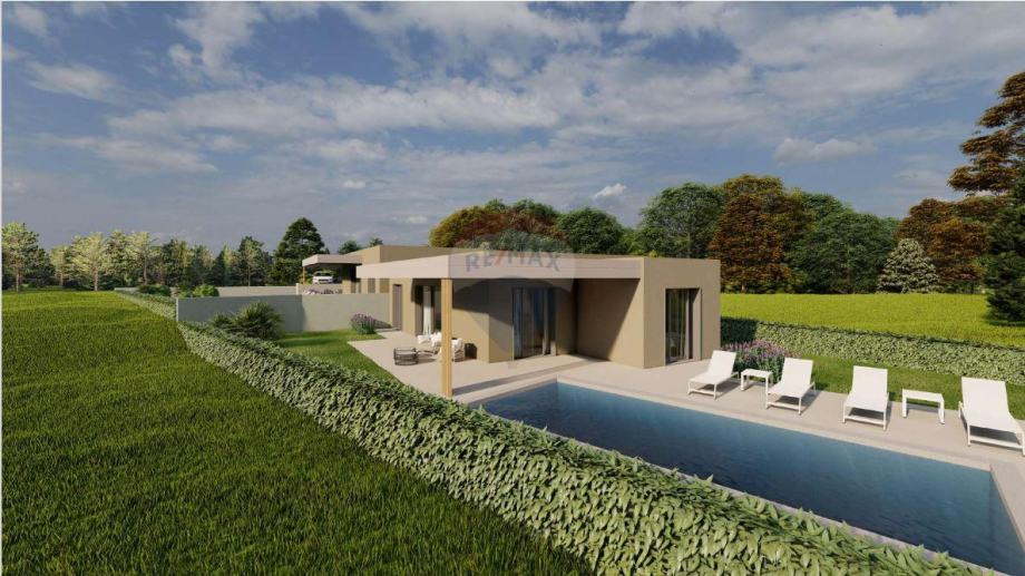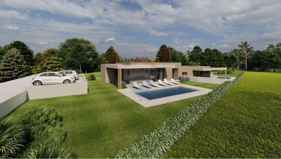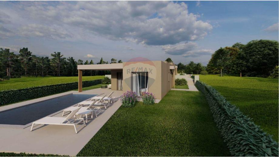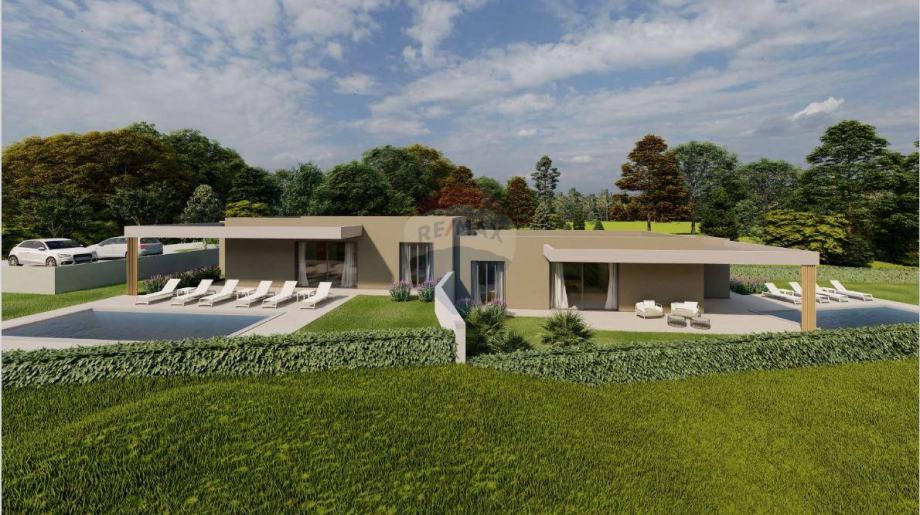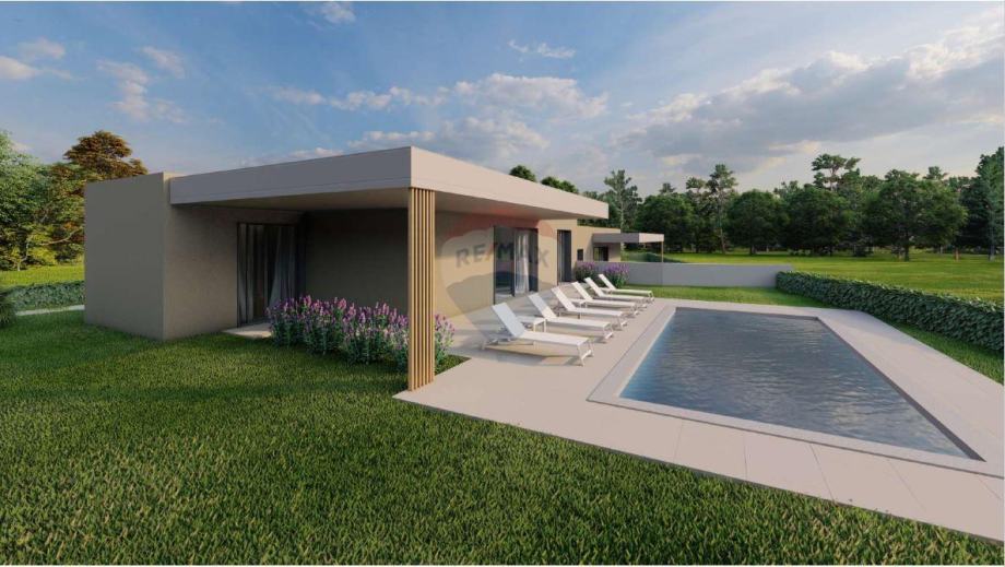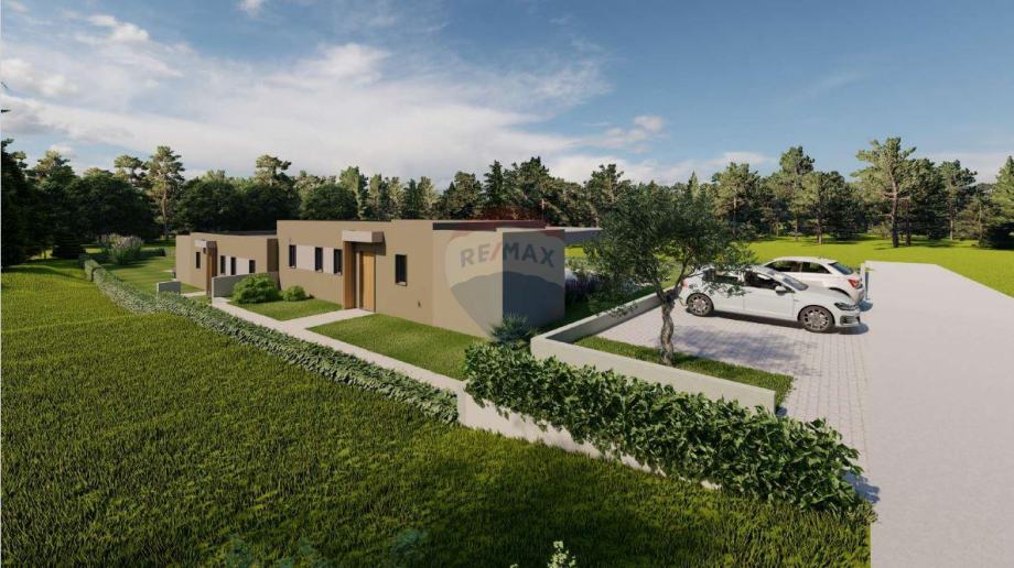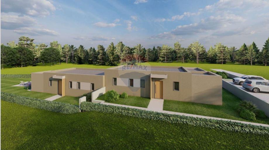 U središnjoj Istri, bogatoj po kvalitetnoj gastro ponudi, autohtonim proizvodima, bujnoj vegetaciji u prodaju smo dobili dvojnu prizemnu kuću. Veličina kuće je 85,84 m2, a sastoji se od ulaznog hodnika, toaleta, dnevnog djela kuće, kuhinja + dnevni boravak s izlazom na veliku terasu od 42,40 m2, dvije spavaće sobe, spremišta. Svakoj će kući pripadati okućnica od cca 470 m2, te vlastiti bazen od 24 m2, svaka kuća imati će 2 parkirna mjesta. U kući biti će postavljeno podno grijanje, Za izolaciju postaviti će se stiropor od 10 cm, troslojna stakla, antracit želuzine... Ako budući vlasnik ima nekih svojih želja, postoji mogućnost dogovora. Na svega nekoliko minuta vožnje nalazi se trgovina, apoteka, škola, vrtić...a do Poreča i predivnih plaža stiže se za 20-ak minuta, a do grada Pazina svega je 10 min.