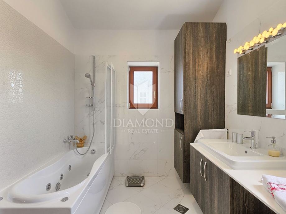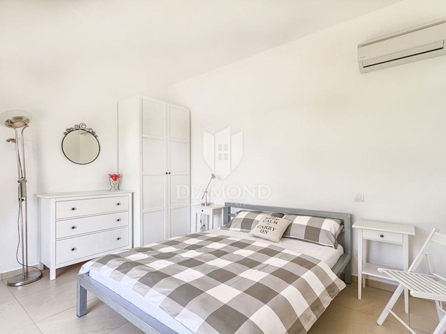 Villa je opremljena kvalitetnim namještajem rađenim po mjeri, sve prostorije su klimatizirane, postavljeno je i podno grijanje na struju u dnevnim prostorijama kao i u spavaćim sobama.