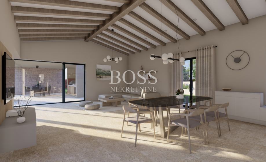 U ponudi imamo kuću za odmor u Istri pokraj Tinjana. Na parceli od 1103m2 nalazi se prekrasna moderna vila s bazenom, novogradnja, skoro završena. Sastoji se od tri sobe, svaka sa svojom kupaonom, dnevnog boravka s kuhinjom i blagovaonom, ukupne površine 170m2 od čega je 31.82m2 ljetna kuhinja, dodatno natkriveni parking od 27.69m2, kao i bazen 55m2 (11x5m). Kuća je građena po visokim standardima gradnje, sustav podnog grijanja na dizalice topline s fan coil sustavom. Boss, kontakt: 091/752-0333 Anita