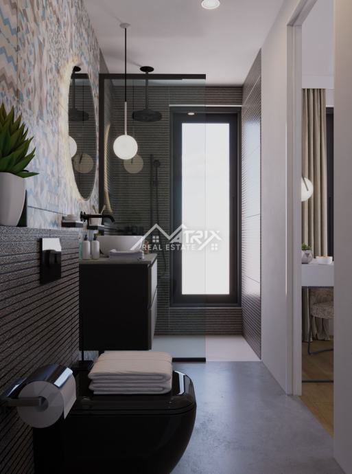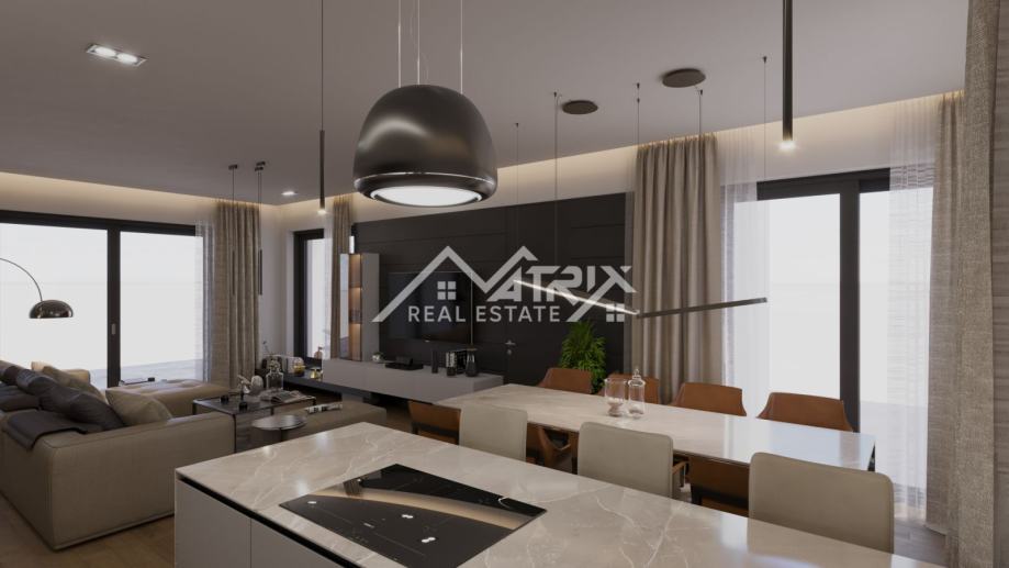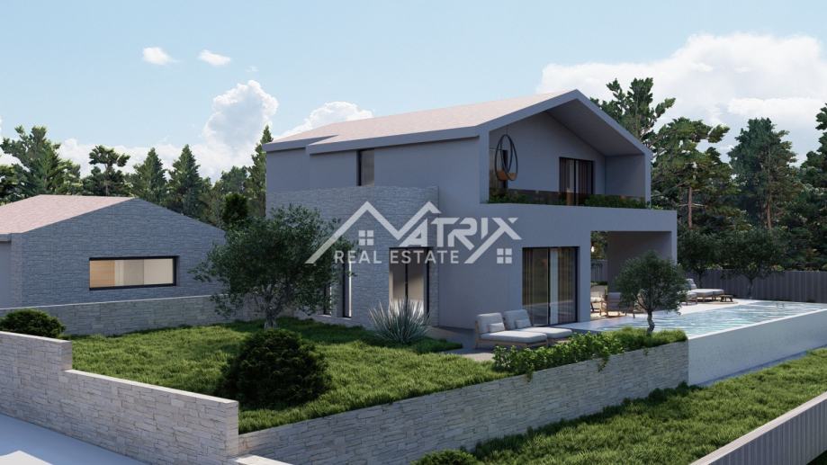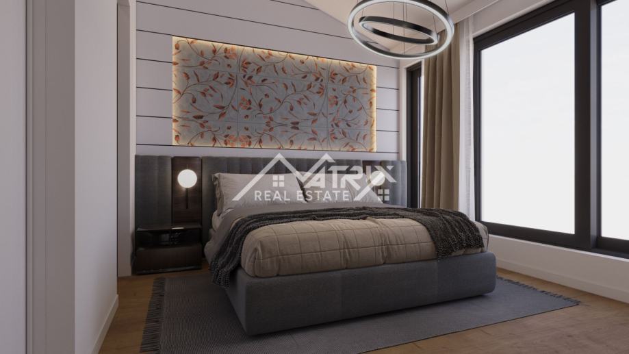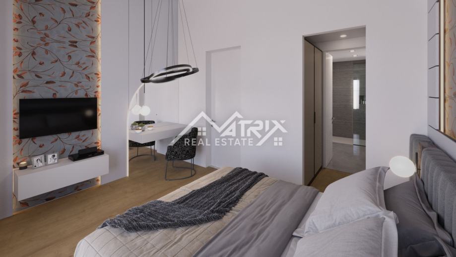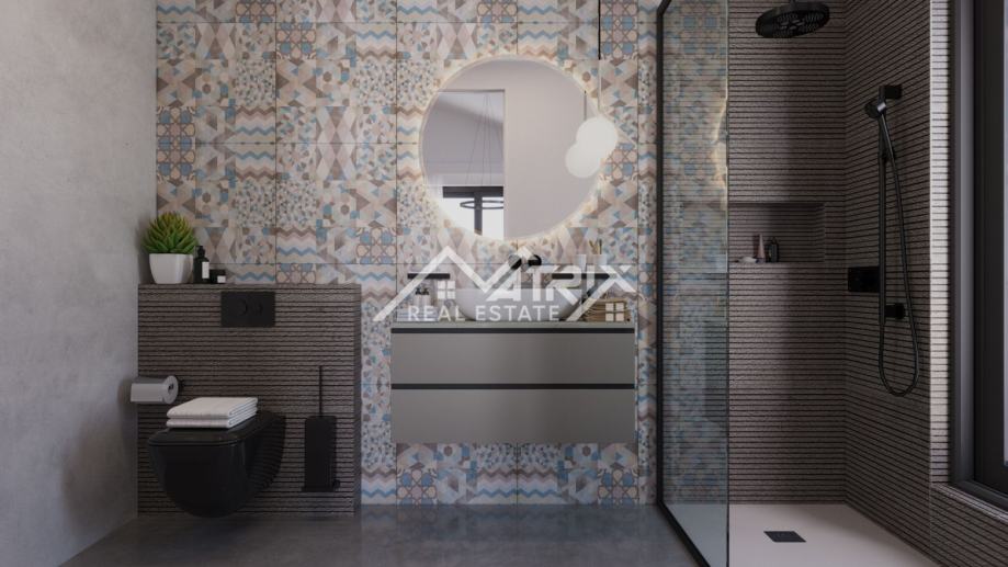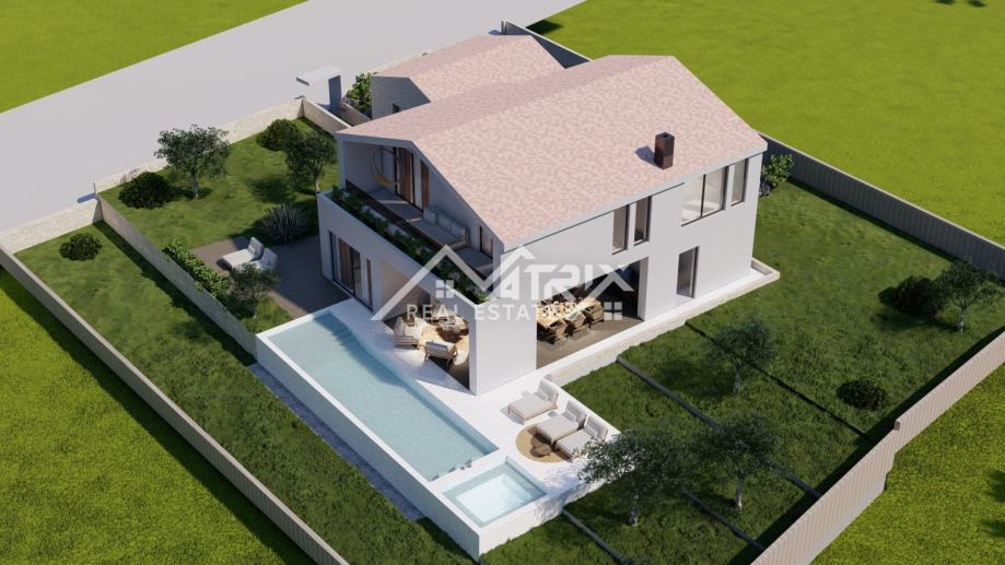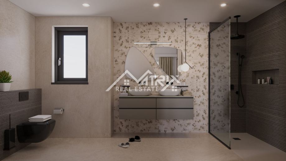 Vila je osmišljena s modernim interijerom i pažljivo planiranim rasporedom prostorija. U podrumu je predviđena wellness i spa zona, idealna za opuštanje i uživanje u privatnosti vlastitog doma. U prizemlju se nalazi prostrani dnevni boravak s kuhinjom i blagovaonicom u open-space konceptu, koji pruža udobnost i prozračnost prostora. Elegantnim stubištem dolazi se na prvi kat, gdje su smještene četiri spavaće sobe, od kojih su dvije master sobe, a svaka soba ima vlastitu kupaonicu.