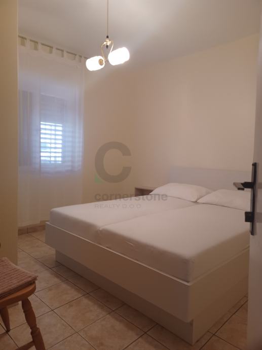 Dozvolu za iznajmljivanje prodavatelj ima za 3 apartmana, 2 su dvosobna i jedan je jednosobni i iznajmljuje se godinama. za jedan dio potrebna je manja obnova (novi podovi). Ispred kuće se nalazi dvorište koje se koristi za parking , manja zelena površina te spremišta.
