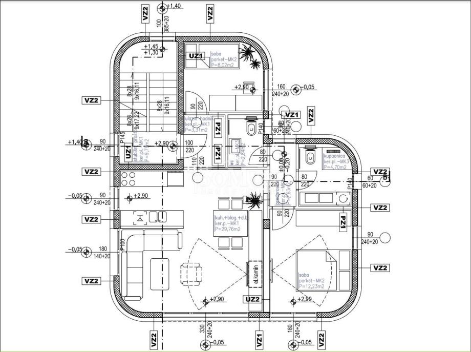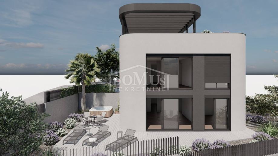U mirnom okruženju građevinsko zemljište površine 318m2, po urbanističkom planu općine Tisno se nalazi u M1 zoni – izgrađeni dio - mješovita pretežito stambena namjena. Zemljište ima projekt za obiteljsku kuću prizemlje + 1 kat sa dvije stambene jedinice neto površine 146,56m2 (bruto površine 192,19m2) za koji je ishodovana građevinska dozvola. Zemljište je pravilnog oblika dužine uz prilazni put cca 21m a širina cca 17m. Kompletna infrastruktura je uz zemljište. Do mora 280m udaljeno, do plaže 350 m, a do centra 800m. Mogućnost prodaje stanova kao zasebnih stambenih jedinica po cijeni od 3200€/m2.