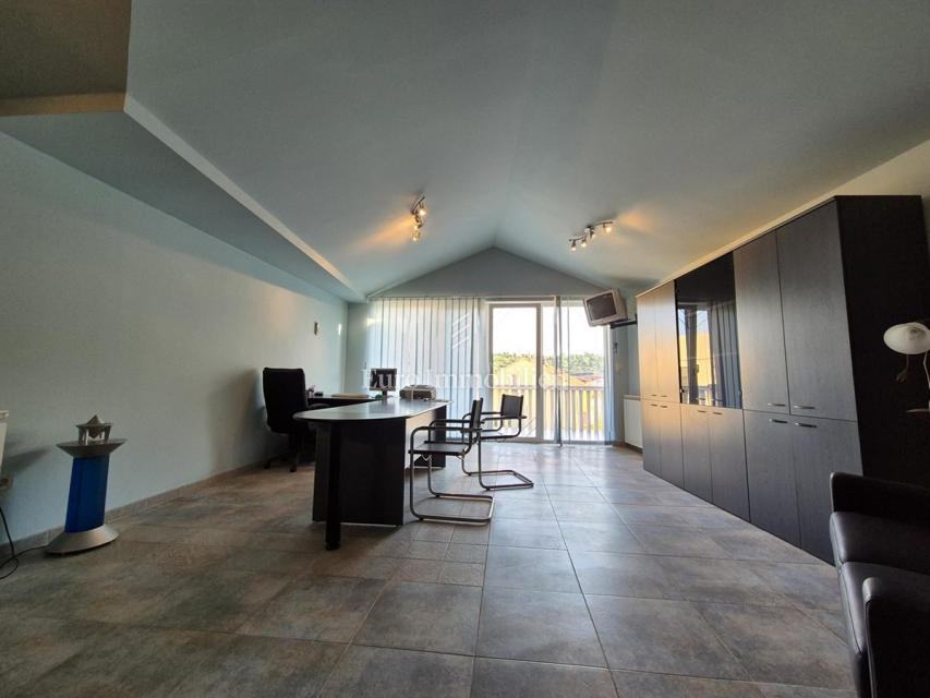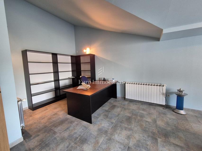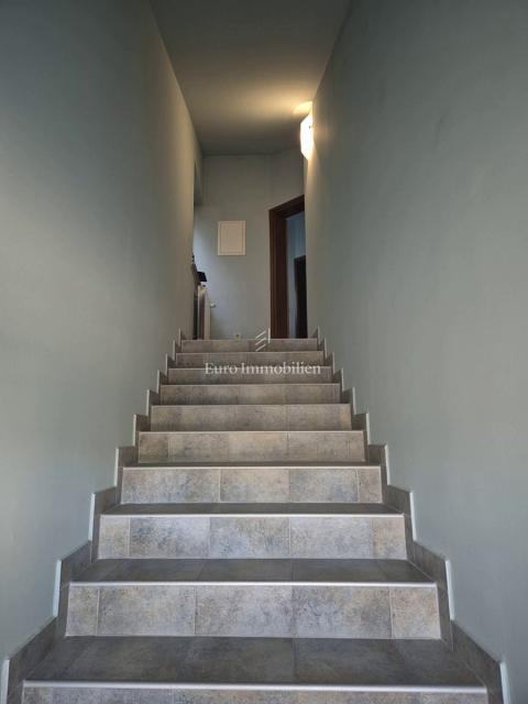 U prizemlju se nalazi velika garaža. Na katu se nalazi jedan stan koji se sastoji od stubišta, hodnika, kupaonice, blagovaonice, kuhinje, dnevnog boravka i balkona.