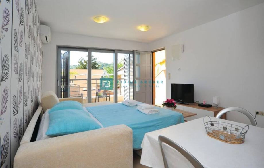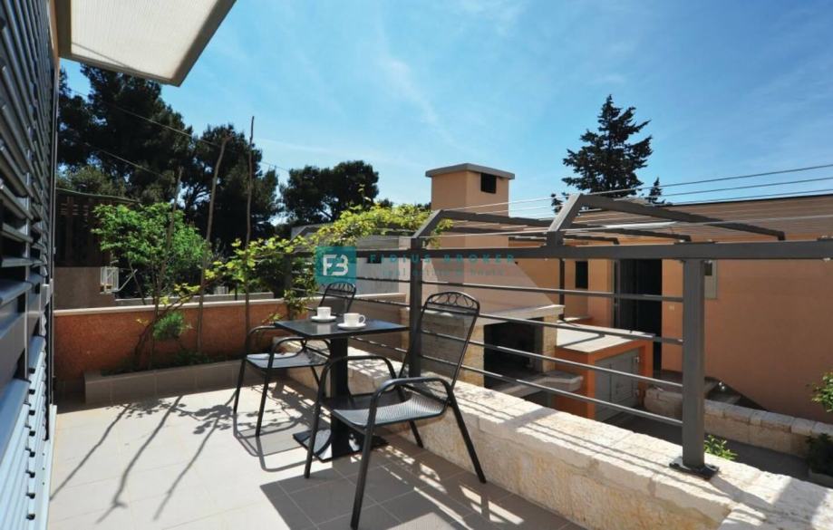Ova nekretnina predstavlja izvanrednu priliku za ulaganje u turističko iznajmljivanje, ali isto tako je idealna i za cjelogodišnje življenje. Smještena je u mirnom dijelu mjesta, okružena obiteljskim kućama. Centar grada je pješke dostupan, kao i plaža koja je udaljena otprilike 300 m.
