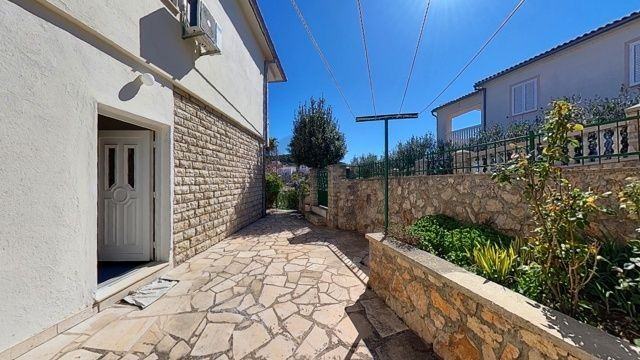 U vrtu ima 5 maslina, mandarina, smokva, brajda, artičoke. Iza kuće je veliki kameni roštilj.
