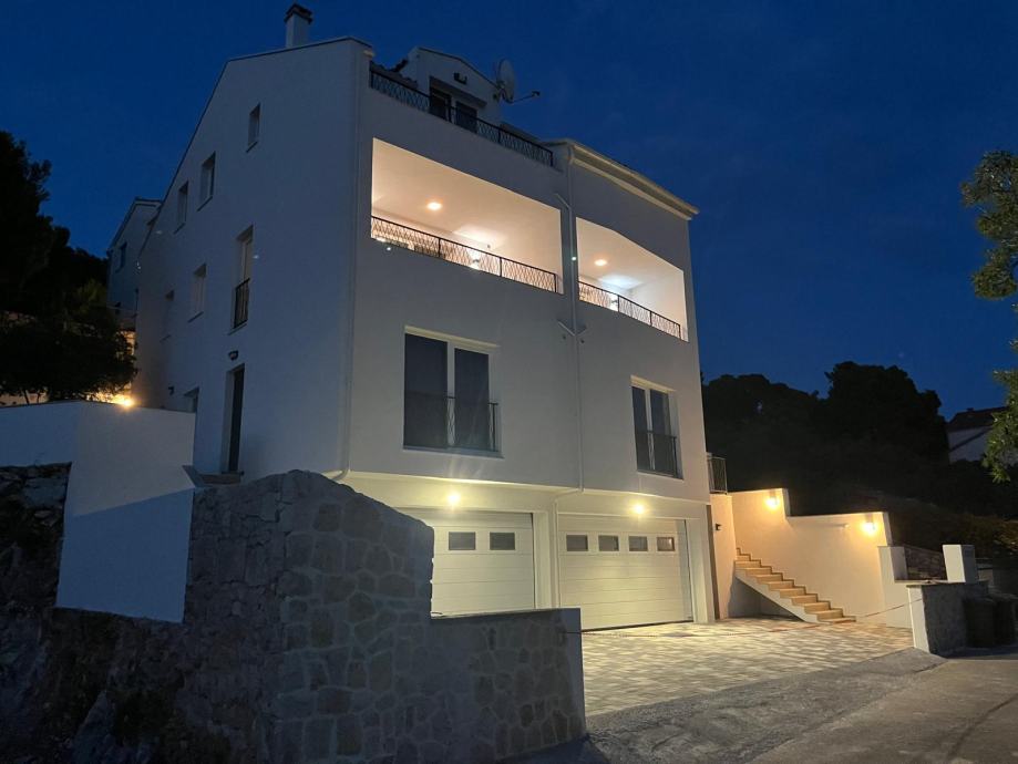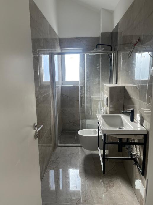Na prodaju su stanovi s prekrasnim pogledom na more, smješteni u manjoj stambenoj zgradi s ukupno četiri stambene jedinice. U prizemlju se nalaze dva manja dvosobna stana, dok su na prvom i drugom katu smještena dva prostrana dvoetažna stana. Zgrada je izgrađena 2024. godine od kvalitetnih materijala i opremljena prema suvremenim standardima. Opremljena je stiropor fasadom, PVC stolarijom i PVC griljama bijele boje, klima uređajima u spavaćim sobama i dnevnom boravku te podnim grijanjem na struju. Svaki stan ima vlastito garažno parkirno mjesto površine 15 m². Lokacija je iznimna, jer se plaža nalazi na svega pedeset metara udaljenosti.