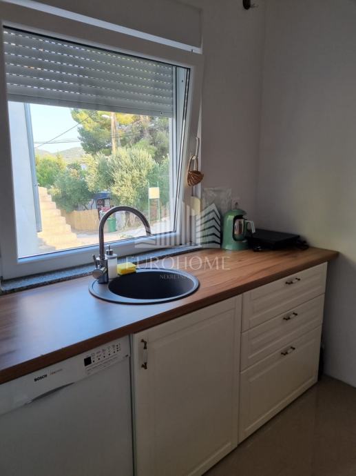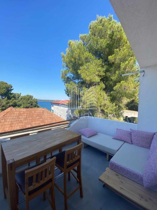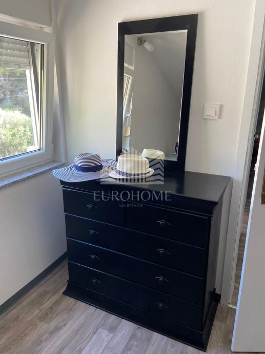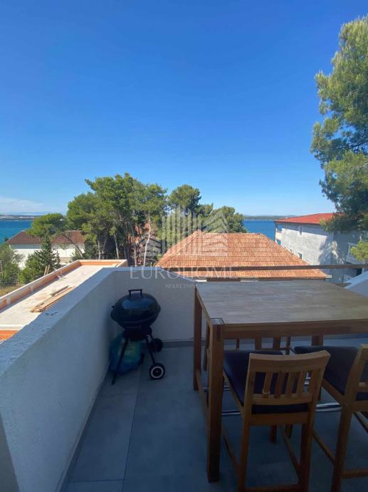 U zgradi sa tri stambene jedinice , u mjestu Tkon na otoku Pašmanu prodaje se dvoetažni apartman neto korisne površine 66m2. Apartman s pogledom na more udaljen je svega 100m od plaže Glavičine.