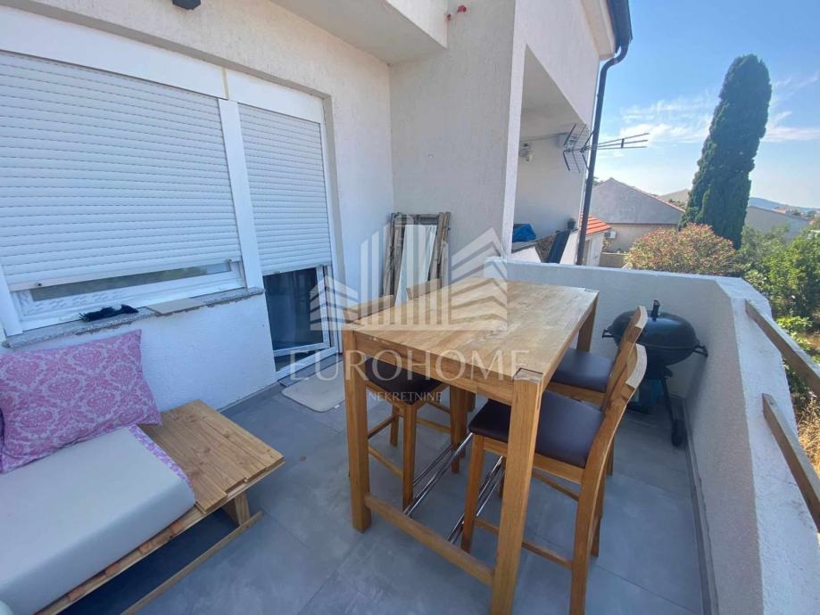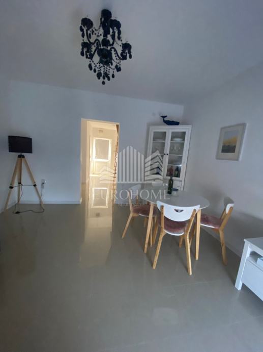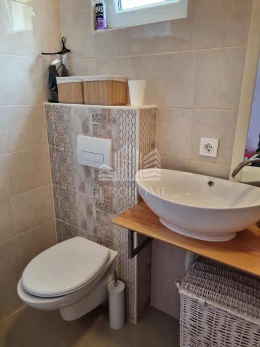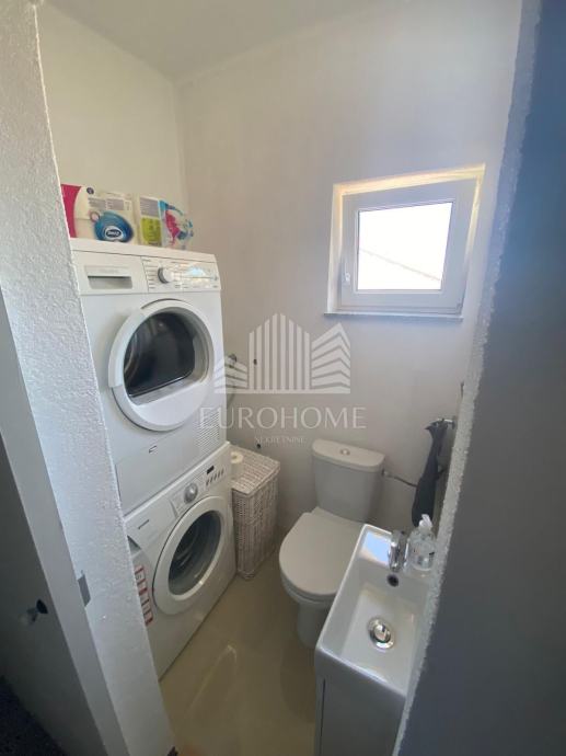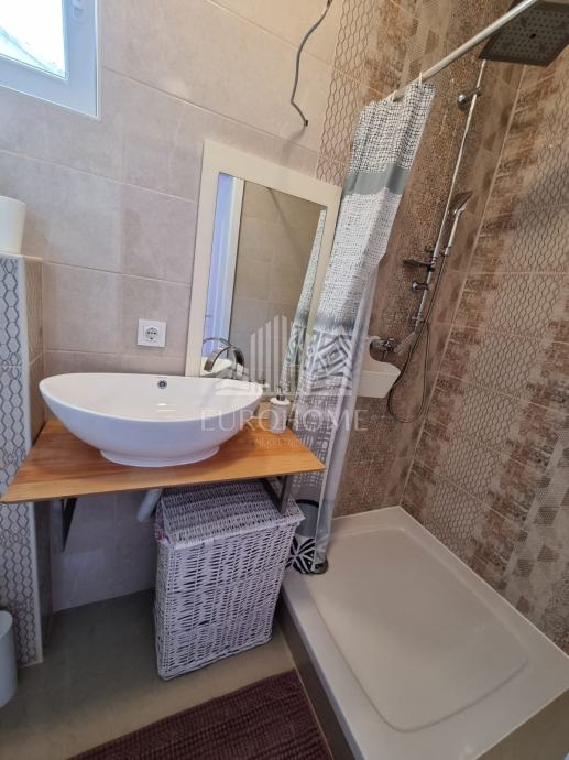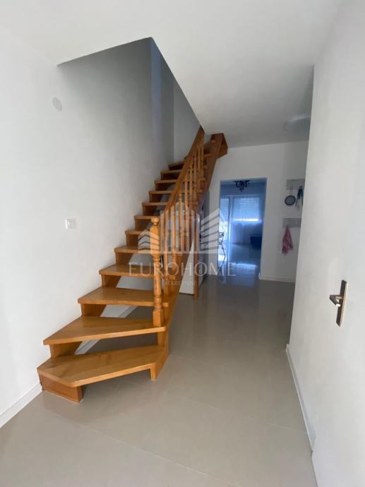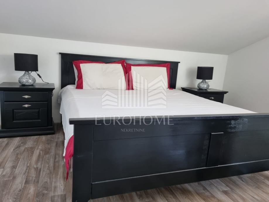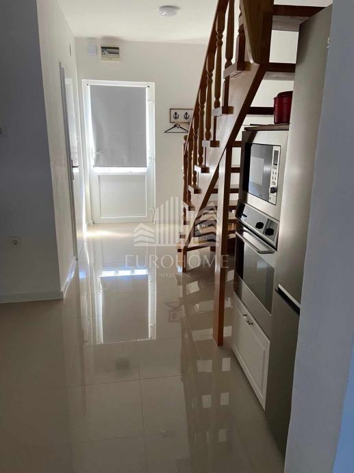 Dvoetažni dvosobni stan na prvom katu i potkrovlju, sastoji se od dnevnog boravka, kuhinje,