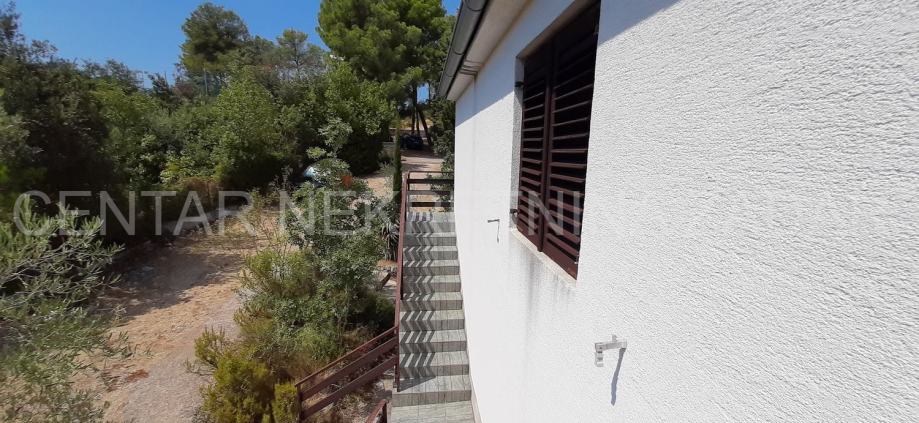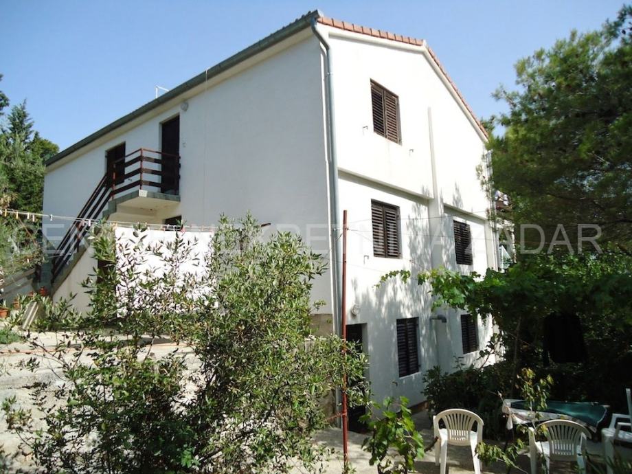 Prodaje se kuća s apartmanima u Tkonu. Smještena je na kraju slijepe ulice u mirnom dijelu mjesta, u okruženju borove šume.