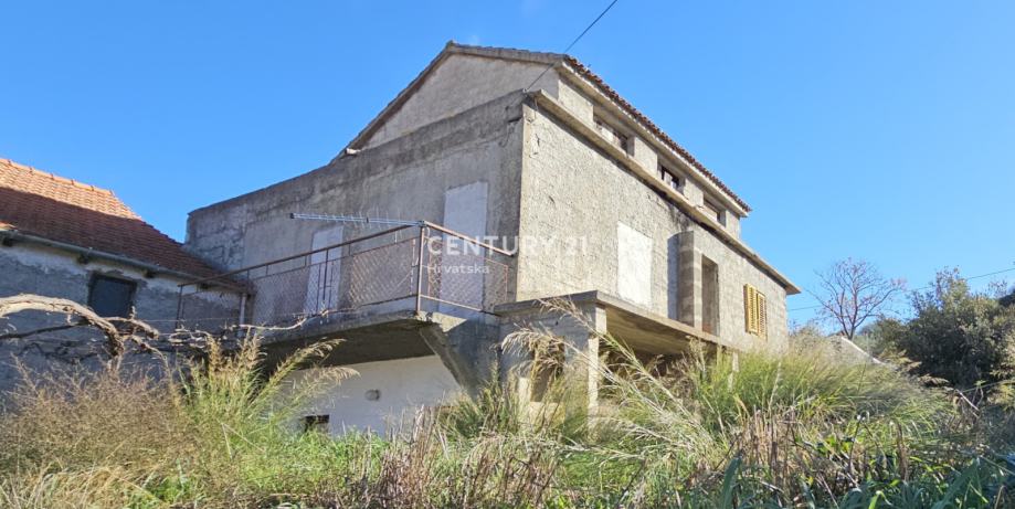 U centru Tkona svega 200 m do mora, na parceli površine 662 m2, izgrađena je i pod krov stavljena nezavršena kuća ukupne površine 230 m2 i koja dominira u svom okruženju.