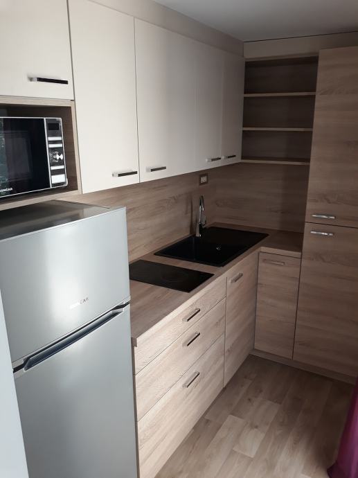 Kuhinja - kuhinjski elementi visokog sjaja, Candy aparati: pećnica, ploča za kuhanje, sudoper sa slavinom, frižider sa zamrzivačem, napa, mikrovalna pećnica