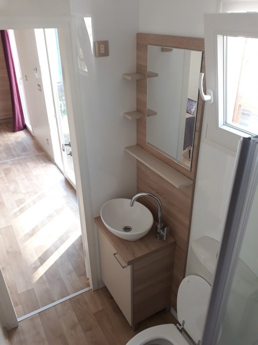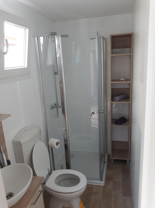 Kupaona - tuš kabina, umivaonik sa slavinom, wc školjka, ormarić za stvari, električni radijator ("lojtra")