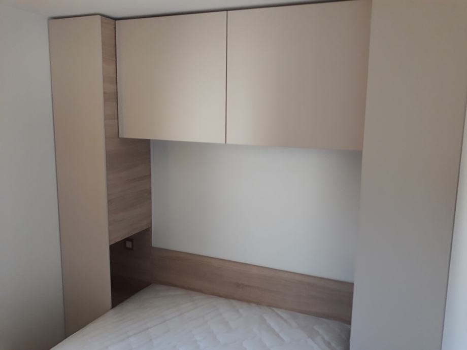 Spavaća soba - bračni krevet, 2 noćna ormarića, niski ormarić za televizor, ormar iznad uzglavlja kreveta