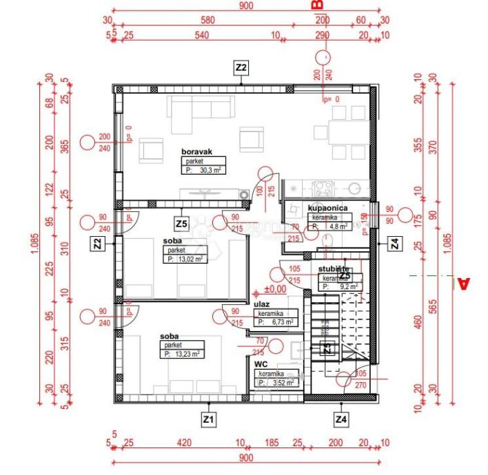 - dnevni boravak, kuhinja i blagovaonica ... 30,3m2
