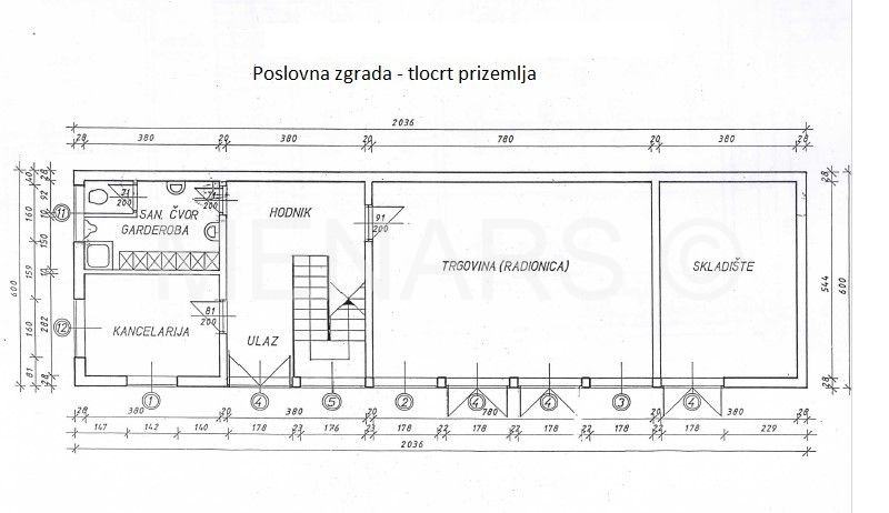 POSLOVNA ZGRADA: ukupne površine cca 230 m2 (tlocrtno 115 m2). Useljiva, namještena i opremljena. Sastoji se od prizemlja i kata.