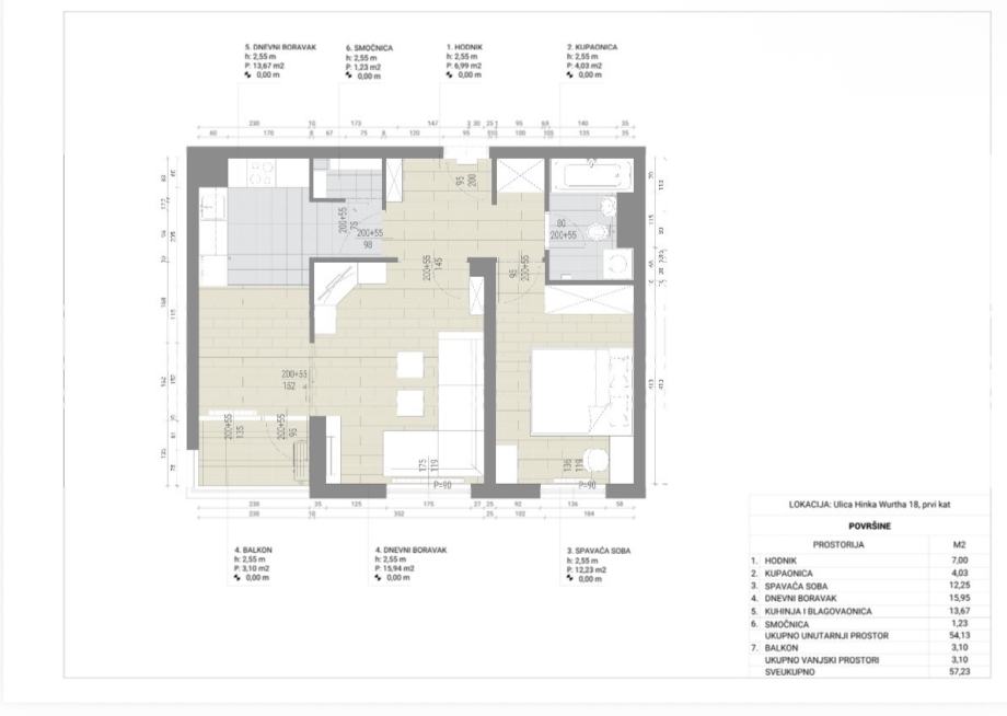 • Površina: 57,23 m²
