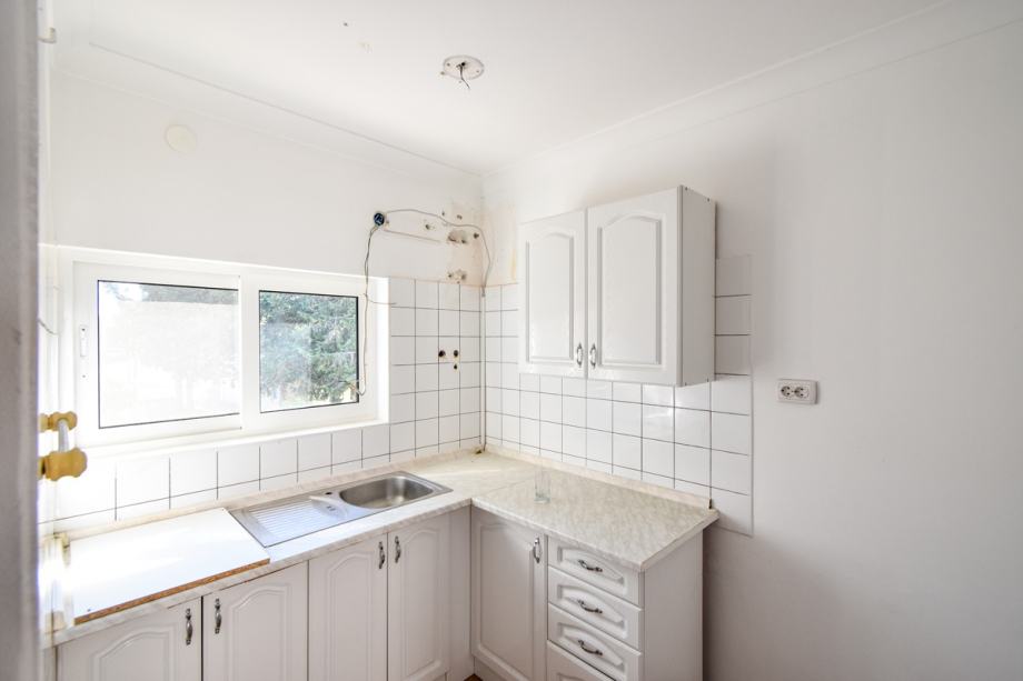 Kuća se sastoji od glavnog dijela gdje se u prizemlju nalazi veliki stan od 130 m2 koji je pripremljen za renovaciju, a sastoji se od: