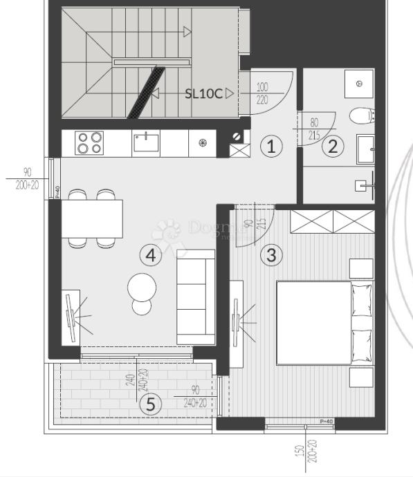 Opcija 3 - Dark - Podovi dnevnog boravka i soba izvedeni antracit keramičkim