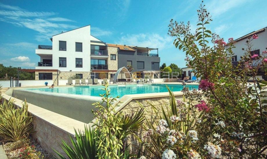 TOP LOKACIJA, stan s bazenom 1. red od mora pokraj parka (prodaja)