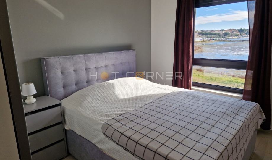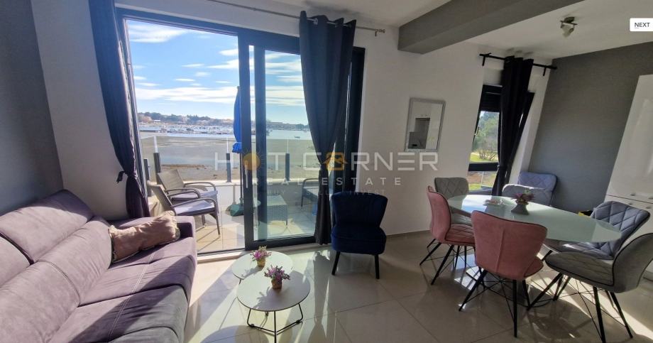 Na jednoj od najboljih mogućih lokacija u Medulinu, u 1. redu od mora, pokraj arheološkog parka Vižula, malog poluotoka idealnog za šetnje u netaknutoj prirodi, na 300 m od prve plaže, na 500 m od centra Medulina, u modernom kompleksu od nekoliko zgrada sa zajedničkim bazenom, na prodaju apartman smješten na 1. katu, površine 55,27 m2 + jedno vanjsko parkirno mjesto, ukupne neto korisne površine 58,39. Apartman sačinjavaju hodnik, dvije spavaće sobe, kuhinja sa blagovaonicom i dnevnim boravkom, kupaonica i nenatkrivena terasa sa nevjerojatno dobrim pogledom na more i šumu….