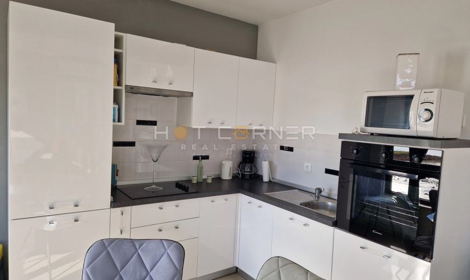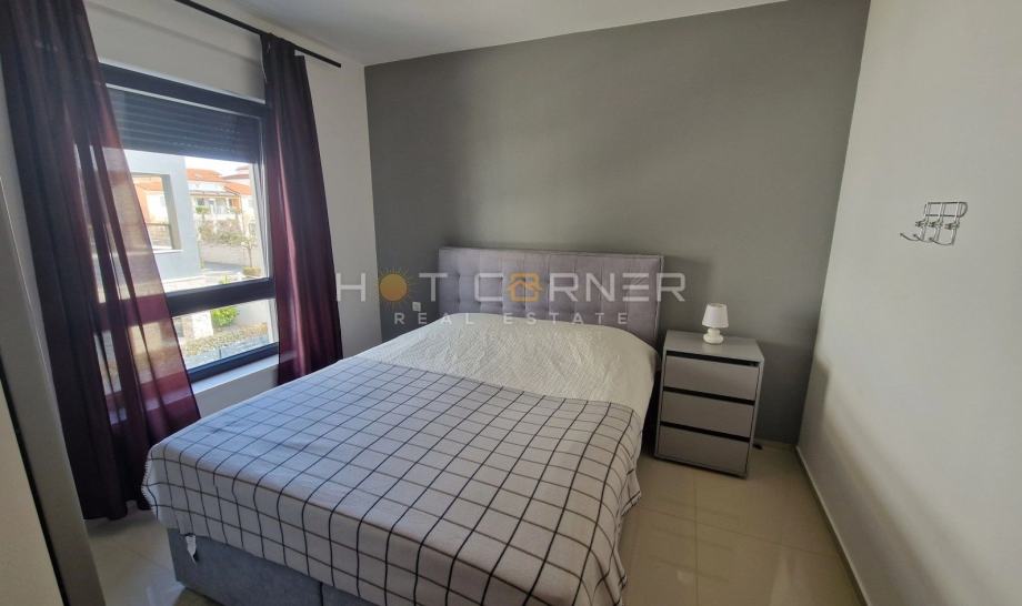 Apartman je kompletno namješten i opremljen, može primiti do 6 osoba (2 spavaće sobe + kauč na izvlačenje u dnevnom boravku), jedna jedinica klime u dnevnom boravku, moderni i kvalitetni završni materijali, potpuno opremljena kuhinja (električni štednjak s pećnicom i mikrovalnom, perilicom posuđa, hladnjak sa zamrzivačem, aparat za kavu, kuhalo za vodu, posuđe i pribor za jelo). Apartman je i kategoriziran te se uspješno iznajmljivao nekoliko sezona.