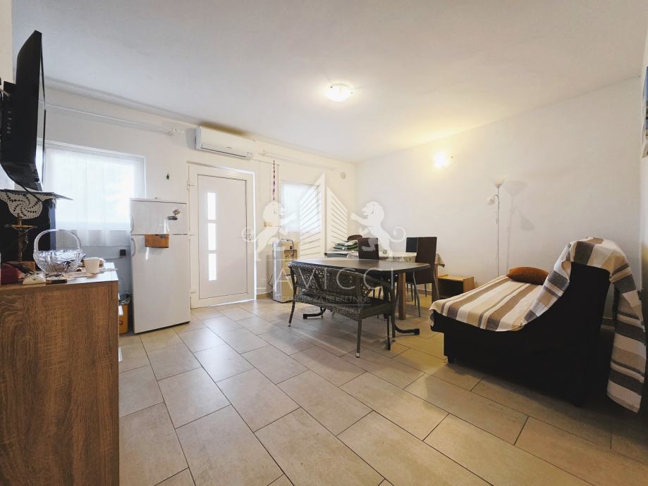 Građena je kvalitetnim materijalima, s PVC stolarijom i ALU roletama, fasadom sa stiropor izolacijom debljine 5 cm, dok su podne obloge kombinacija keramičkih pločica i laminata. Grijanje i hlađenje osigurano je putem klima uređaja u obje stambene jedinice.