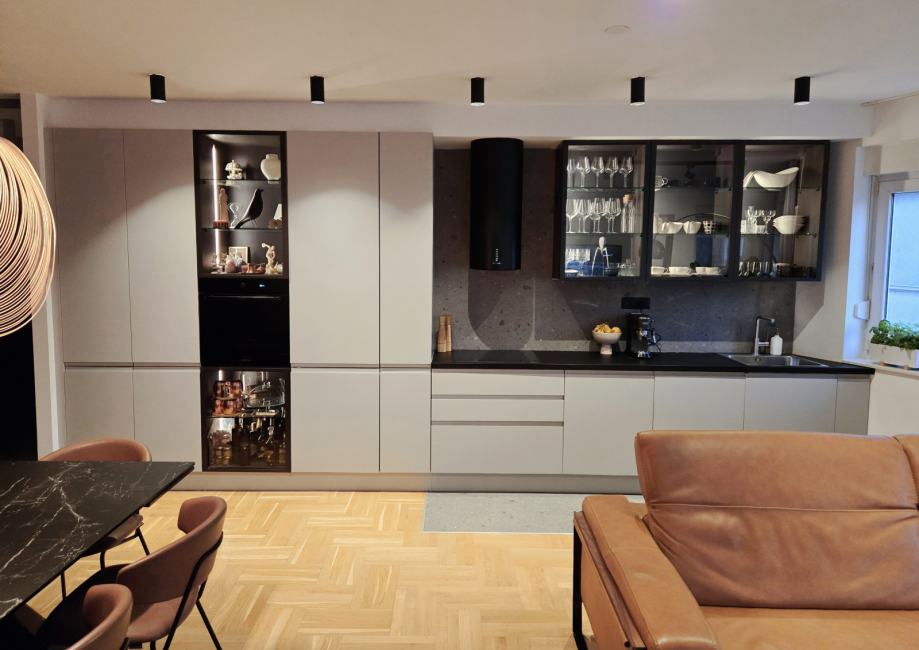 Stan odiše svjetlom, prostranošću i modernošću. Renovacija uključuje nove instalacije, keramiku, rasvjetu – sve pažljivo birano s naglaskom na kvalitetu i dizajn.