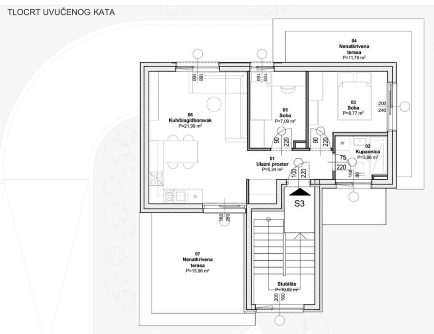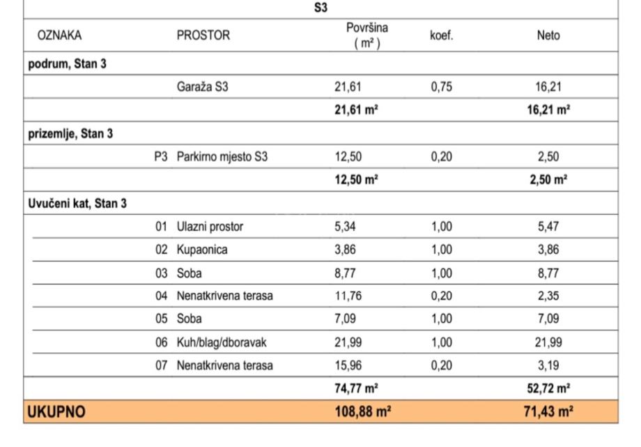 Stan na drugom uvučenom katu- Površina 71.43 m2(neto)