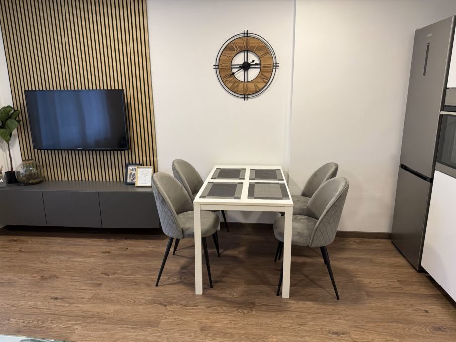 U stanu je nova perilica posuđa, novi veliki hladnjak sa zamrzivačem, nova perilica rublja, nova kutna garnitura, novi stolci... Stan je u potpunosti adaptiran i jako ugodan za življenje.