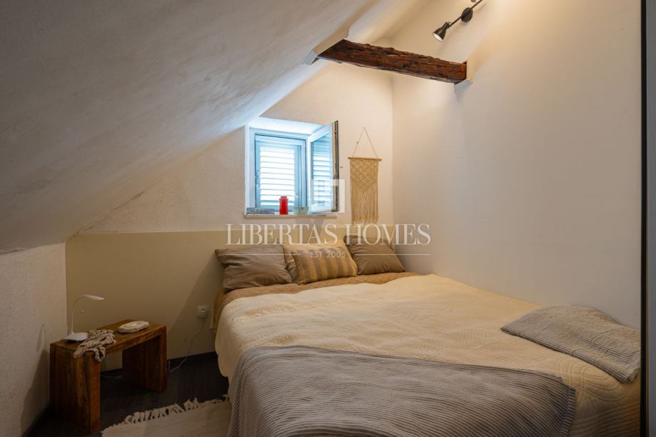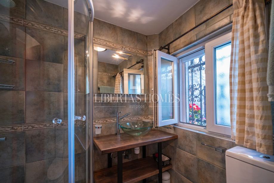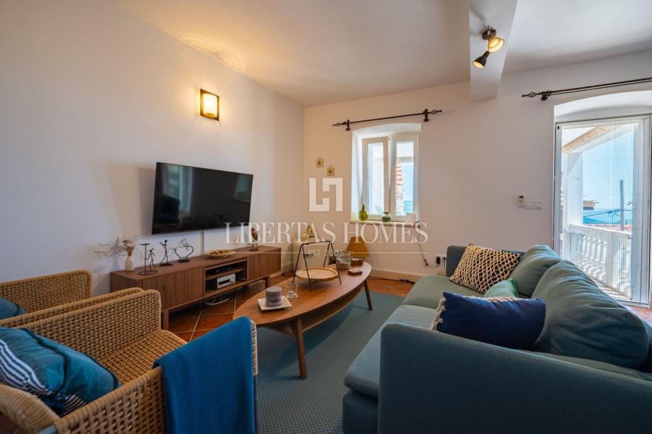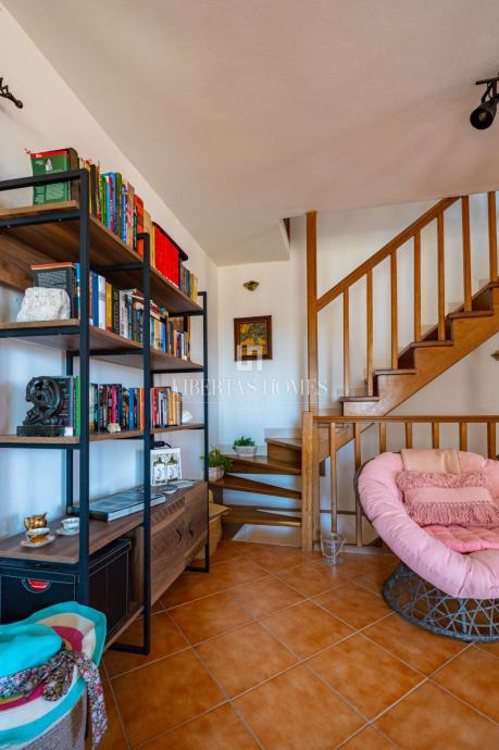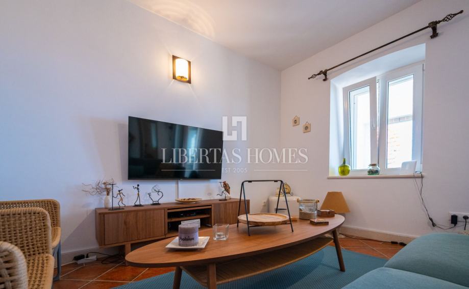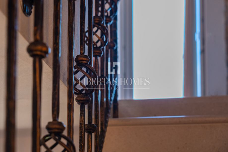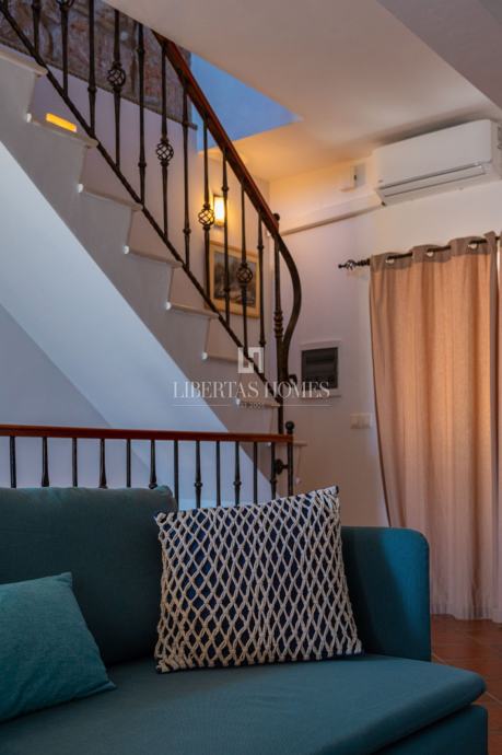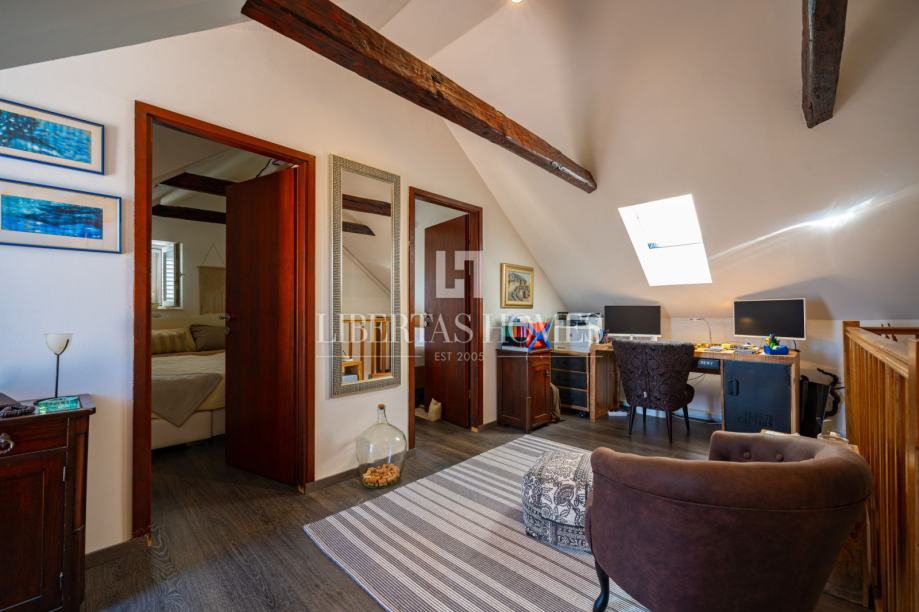 Unutrašnjost kuće odiše autentičnim mediteranskim šarmom. Pri uređenju je poseban naglasak stavljen na prirodne materijale, osobito kamen, koji se kao središnji dekorativni element savršeno uklapa u prostor i stvara toplu, tradicionalnu atmosferu.