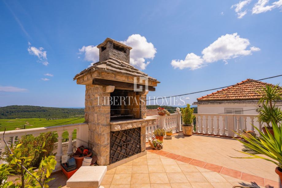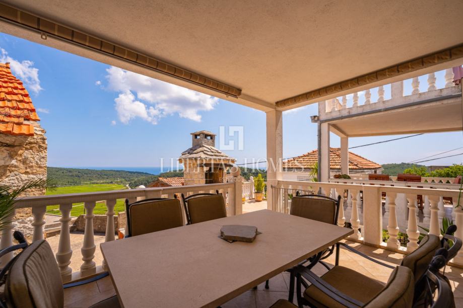 Sa svih terasa pruža se prekrasan pogled na okolinu, dok se u prednjem dijelu kuće nalazi uređeno kameno dvorište, idealno za opuštanje ili objedovanje na otvorenom. U sklopu parcele smješten je i izdvojeni objekt s potpuno opremljenom ljetnom kuhinjom, savršenom za ljetna druženja i kulinarske užitke.