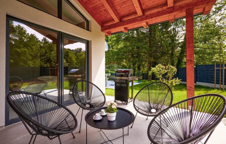 te velike terase sa hidromasažnim bazenom, roštiljem i sunčalištem.