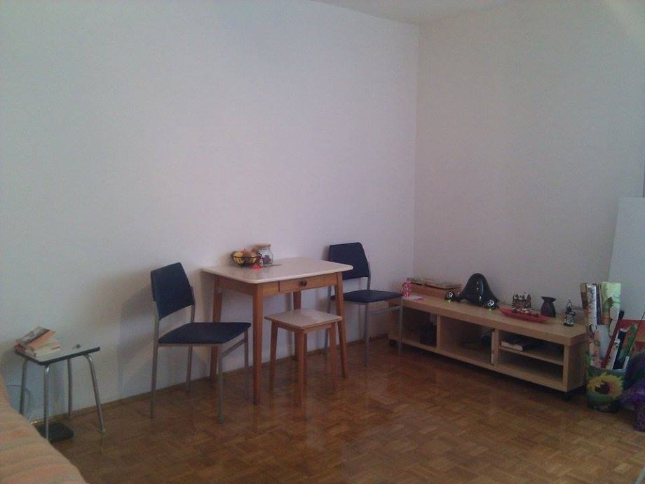 Stan se nalazi na Ravnicama, 3-4min hoda do tramvajske stanice (4,7,11,12), na 1. katu zgrade. Prozori su okrenuti na jug i iz stana se pruža pogled na park. U stanu su jedna veća soba (spavaća, dnevna, radna), jedna manja soba (spavaća), kuhinja i kupaonica. Stan također ima balkon, ali to sve možete vidjeti na slikama koje sam priložila.