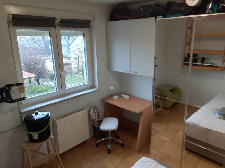 I am looking for a roommate, a clean, tidy person, for an apartment in Kajzerica. 40 m2, separate room. The apartment has air conditioning, all appliances and furniture. There is private parking available in front of the building. It faces southeast and has lots of light. The building has two entrances and is 10 minutes away from two tram stations. On one side is Novi Zagreb, Shopping center Avenue Mall, Velesajam, Hipodrom, and on the other side is Savska, Stjepan Radić student dormitory, tram stop četvorka and the direction to the city center and Jarun. Heating is central heating. The room contains a 120x200 cm bed, a desk, anatomic chair, shelves, wardrobe, night table. Close proximity to various facilities, public transport, bus and tram. The price is 300 euros per month and half the bills. Deposit, one month's rent.