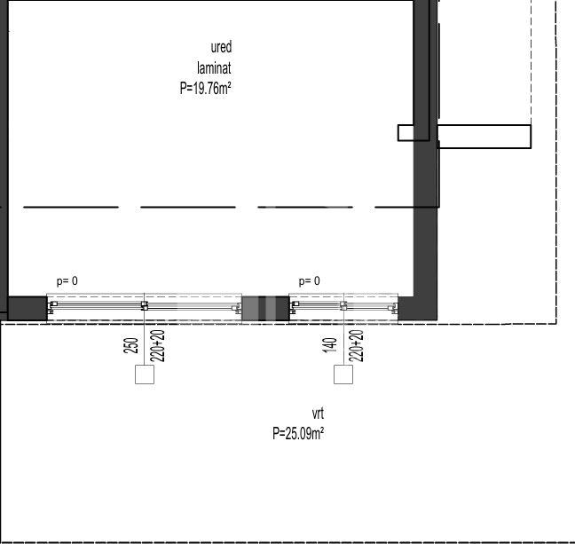 Unutarnja površina prostora iznosi 19,76 m2, a vrta 25 m2.