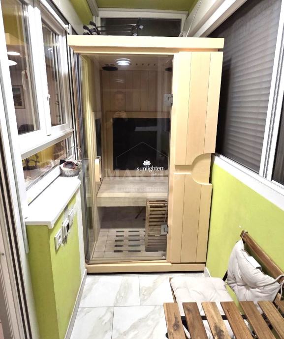Postavljene su nove instalacije struje, etažnog plinskog grijanja, hlađenja, vodovoda i odvodnje. Sva brojila od struje, vode i plina su zasebna. Stan ima odličan raspored i velike staklene površine u svakoj prostoriji. Ima klima uređaj, podno grijanje, rolete s el. podizačima na svim prozorima, rolo komarnike, protuprovalna vrata, tuš kabinu i saunu na zatvorenom balkonu. Sve je rađeno s iznimno kvalitetnim materijalima. U stanu ima puno svjetlosti i sunca pa je i veoma ugodna atmosfera.