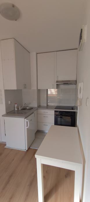 Iznajmljujem stan u novogradnji na Trešnjevci, Blagajska ulica. Stan se sastoji od odvojene spavaće sobe, dnevnog boravka s kuhinjom te WC-a. Svaka prostorija ima svoj klima uređaj(za grijanje i hlađenje). U sobi se nalazi veliki krevet (140x200) i dva ormara. Kuhinja opremljena pećnicom, štednjakom i frižiderom sa zamrzivačem. U haustoru zgrade se nalazi ostava za bicikle.
